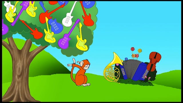 Children engage in pretend guitar playing when a Monkey on a cereal box comes to life and starts playing air guitar. In this high energy video featuring children pretending to be rock stars, child viewers happily and eagerly follow along to this classic one of a kind song.